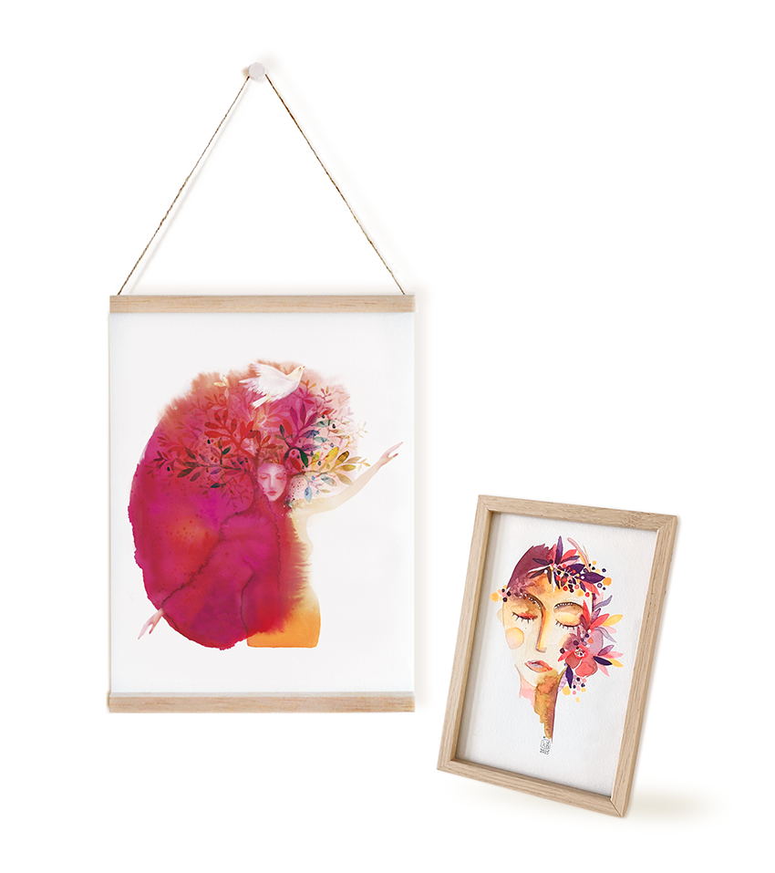 Des aquarelles colorées, un univers poétique, onirique et féminin …