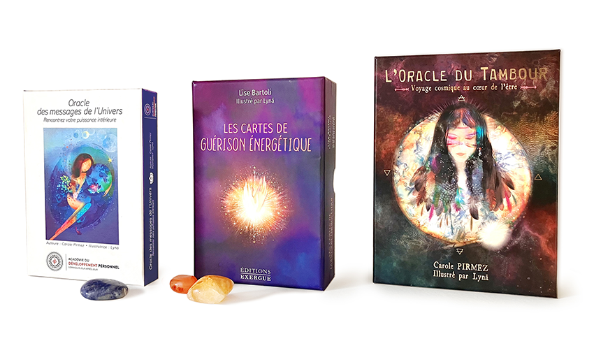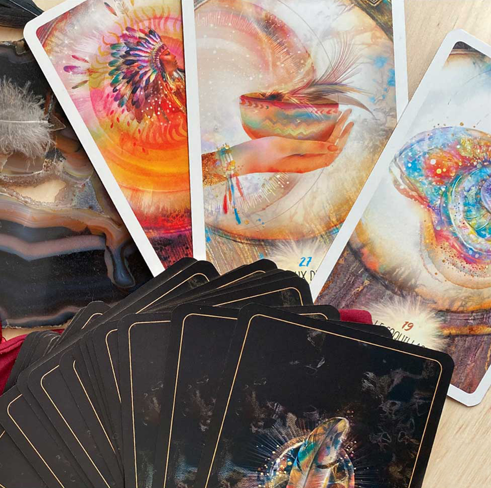 Illustrer un livre et encore plus un oracle ressemble souvent à un voyage initiatique avec pour but d’accompagner la guidance écrite et d’en optimiser visuellement le ressenti. Ce sont des connexions qui se font et parfois même d’heureux hasards qui permettent l’éclosion de quelque chose qu’on n’attendait pas et alors, c’est ‘’ l’île au trésor ‘’ comme le chante Michel Jonasz.